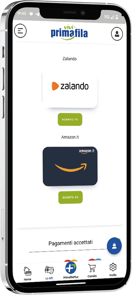 Seleziona i tuoi brand preferiti, scegli l’importo e acquista le gift card a un prezzo agevolato. Puoi scaricare le gift card direttamente sul tuo smartphone in qualsiasi momento, per fare shopping immediatamente, online e in negozio.